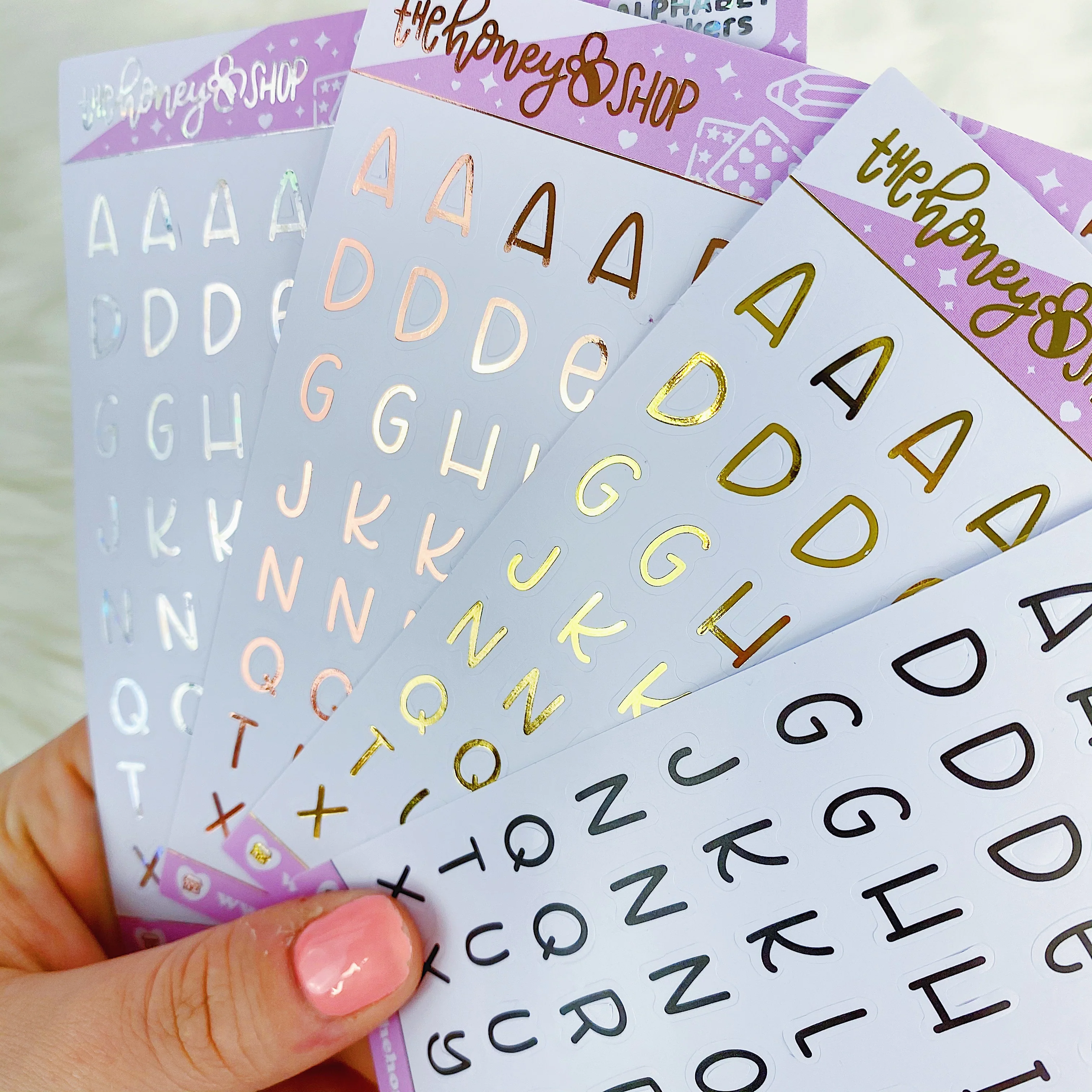 Alphabet Sticker Pack | Black, Star Holo, Rose Gold, + Gold | 4 Sheets Included