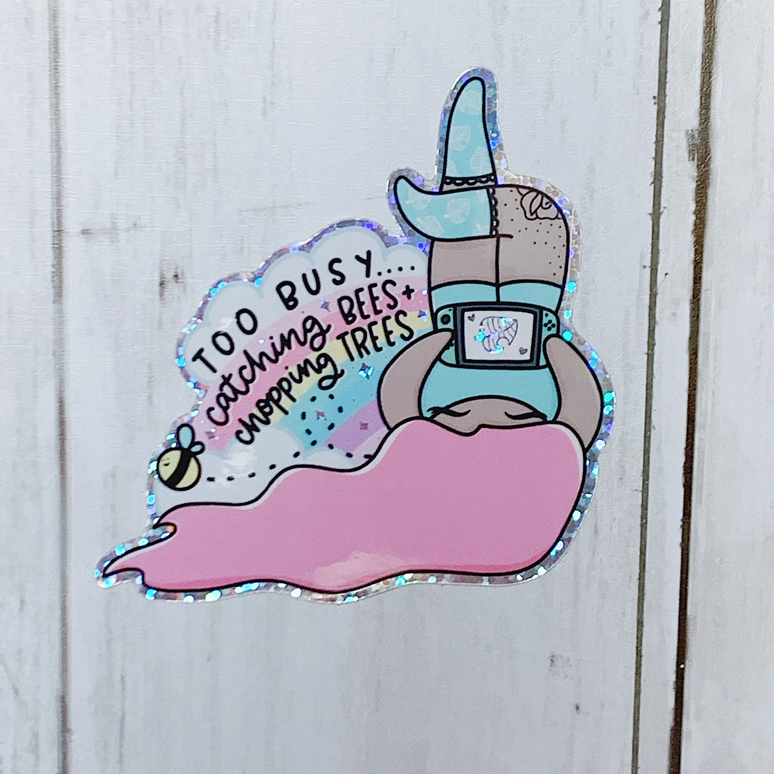 Catching Bees + Chopping Trees Vinyl Die Cut | Holographic Glitter Foiled | Choose your Skin Tone!